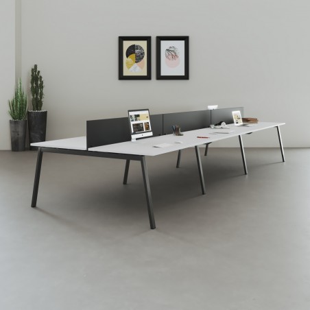- Aus Melamin gefertigte Tischplatte zu 25 mm mit abgerundeten Ecken zu 2 mm für viel Komfort bei der Arbeit dank der Widerstandskraft des Materials und seiner sorgfältigen Verarbeitung.